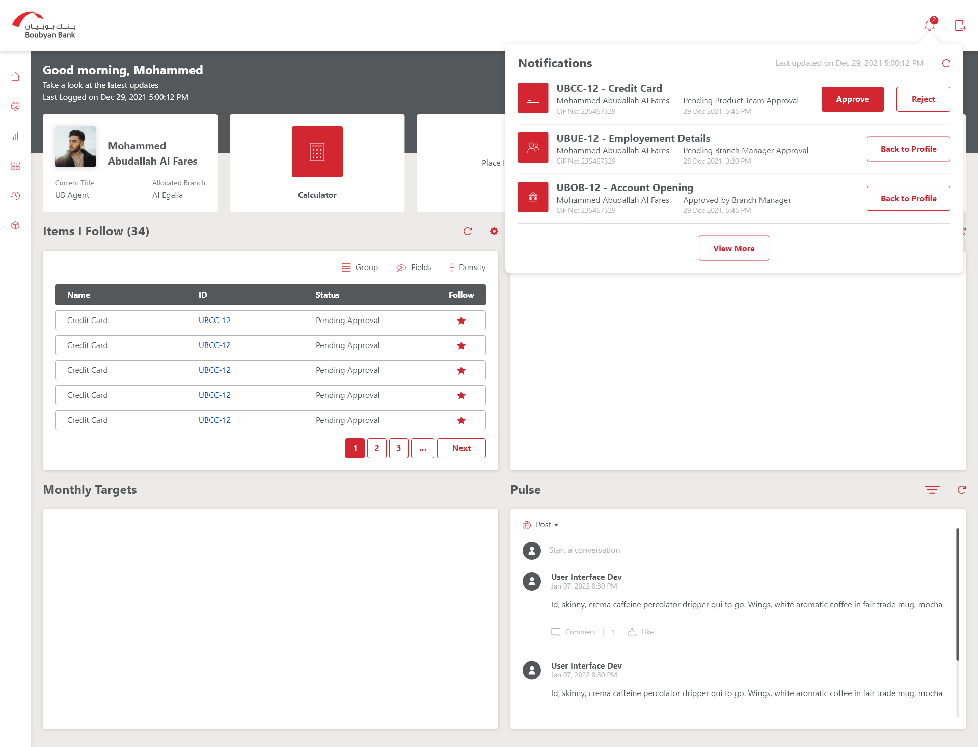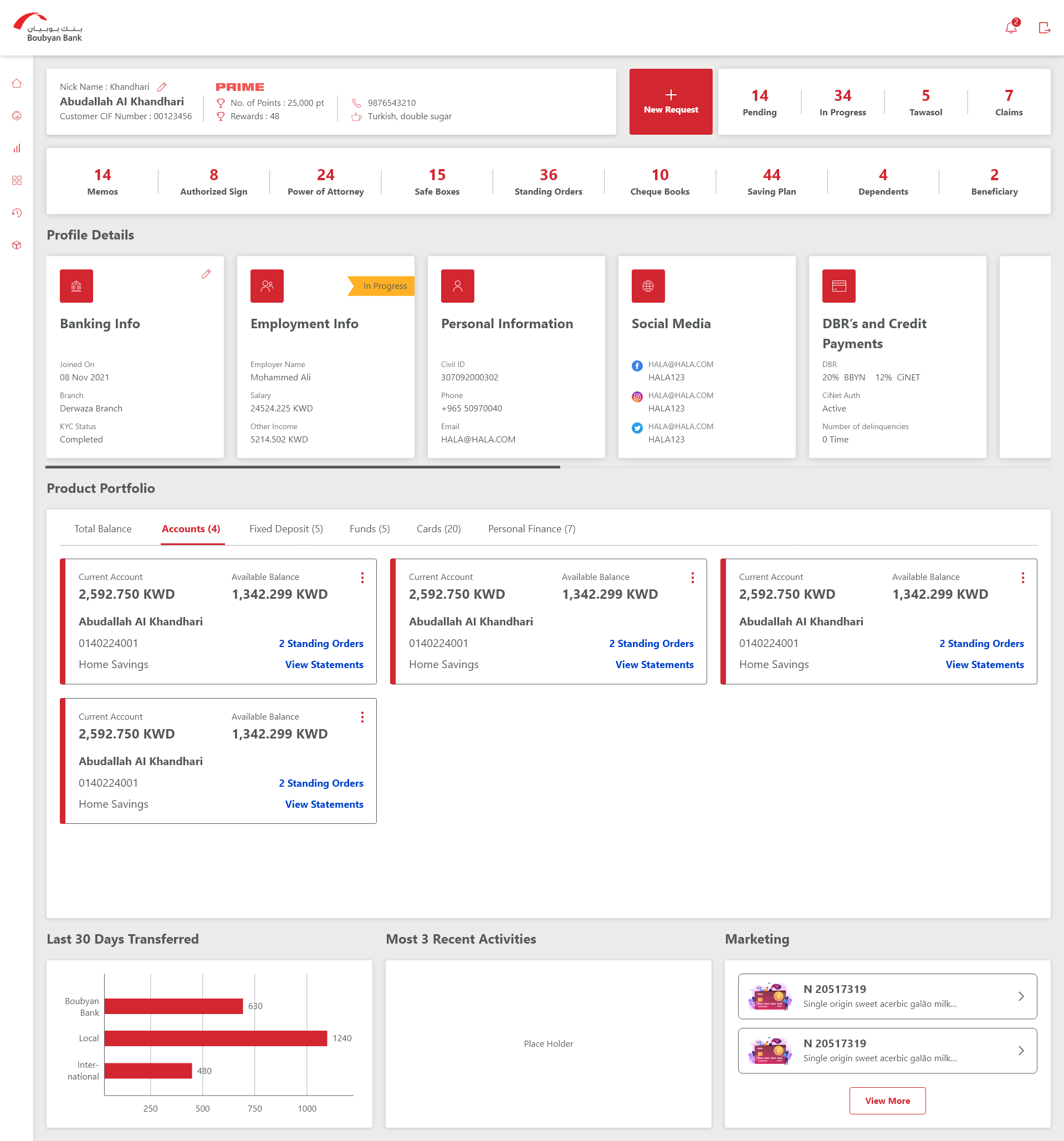 In order to bring users attention and at the same time to reduce the cognitive overload, we went with the status indicator approach wherein the key information like the request status (In progress/ pending etc) and similarly the number of standing orders, dependants etc were indicated through numbers. So that user can comprehend the data with ease and not get overwhelmed with too much information on the dashboard.